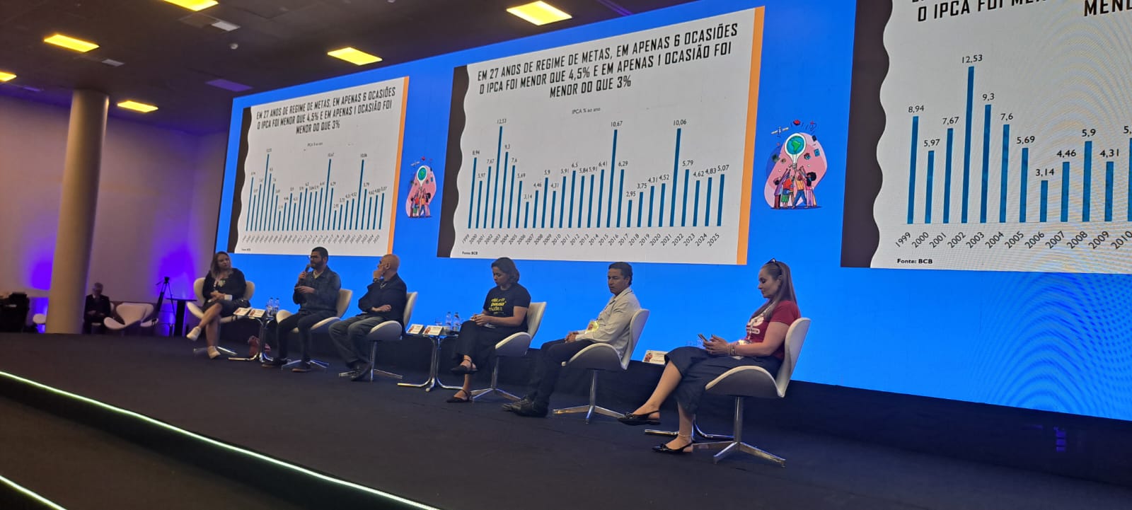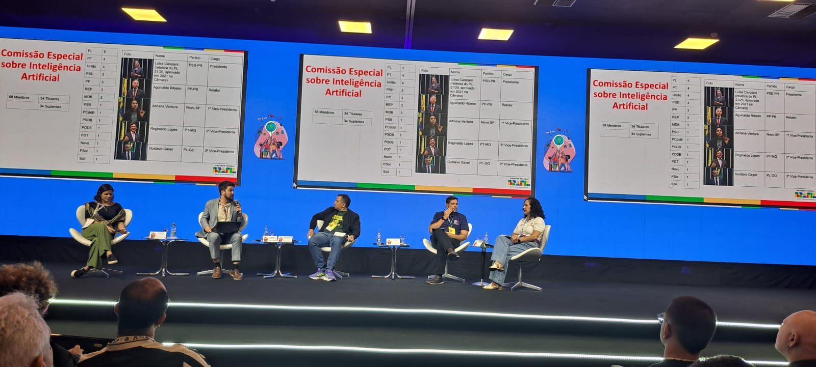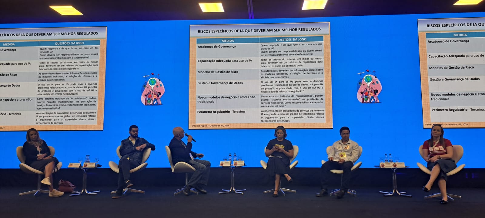 A segunda mesa da manhã, o jornalista Lucas Leffa, falou sobre a importância da Regulação da IA e deu como exemplo o descontrole da IA ligada ao crescimento de fraudes no Brasil.