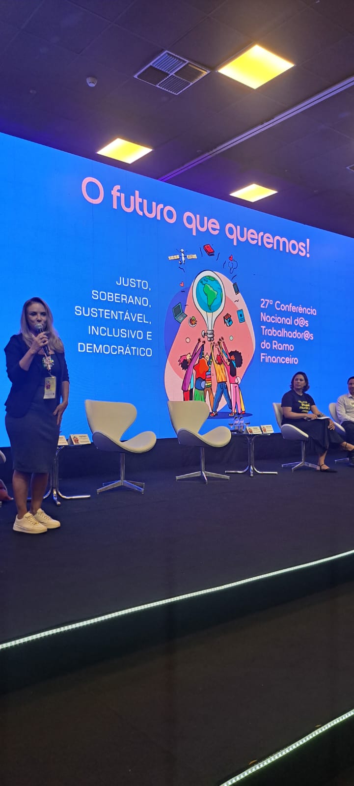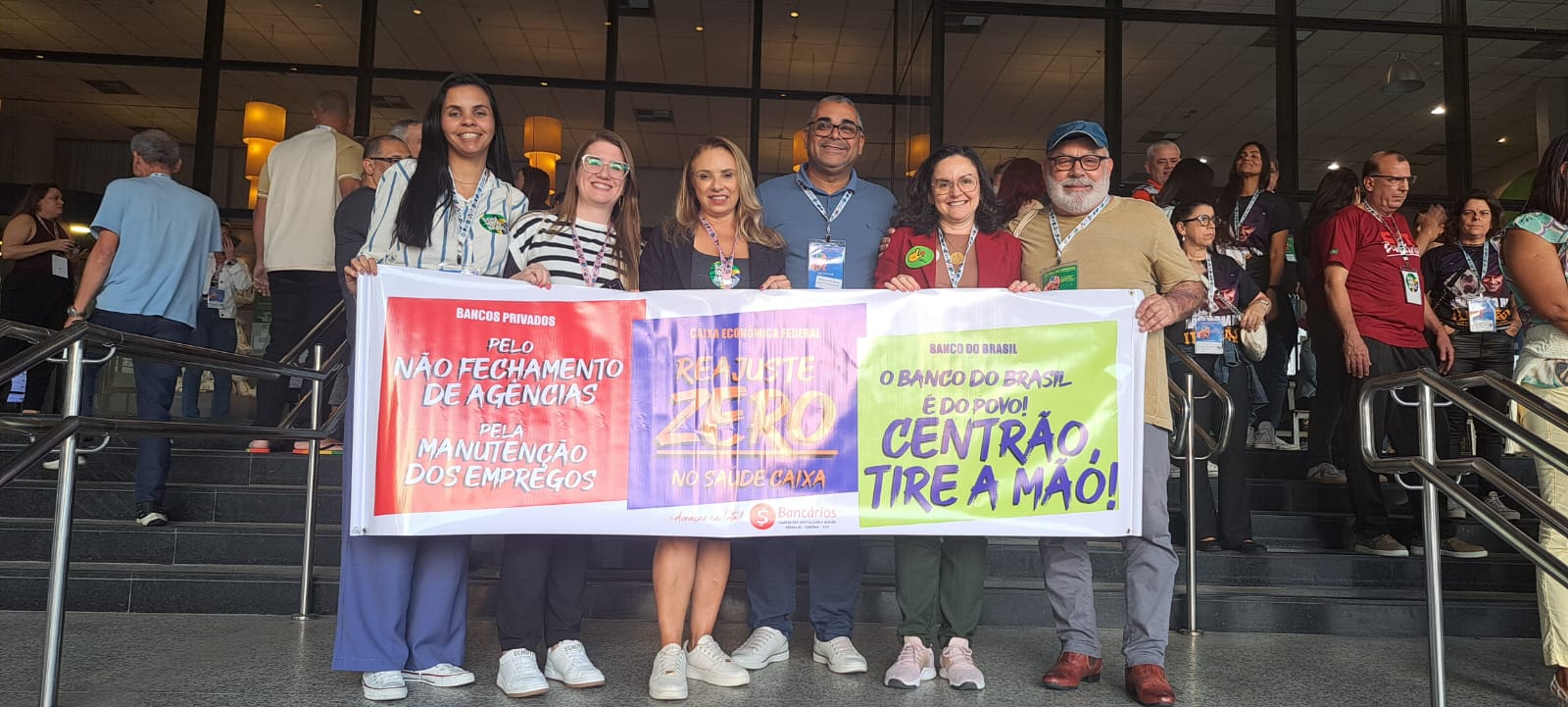 No dia 22/8, ao som de Aquarela do Brasil, na voz da cantora Gal Costa, foi aberta a 27ª Conferência Nacional do Ramo Financeiro, em São Paulo. Auditório lotado, hino nacional, palmas, grito de guerra, painel interativo, muita informação e a certeza de que com luta e união é possível chegar no futuro que nós queremos, lema do encontro.